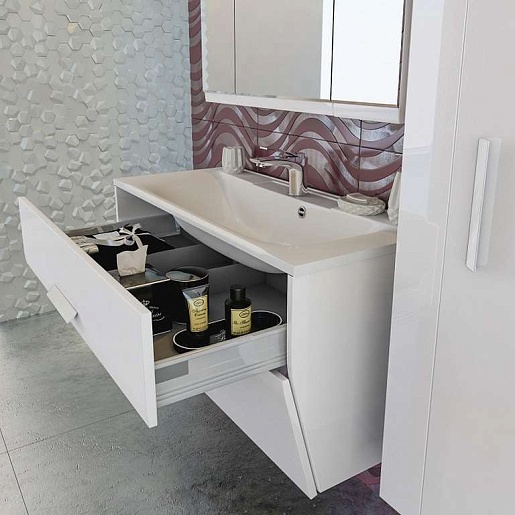 - тумба Edelform Forte 80: тумба подвесная (опоры декоративные приобретаются отдельно), выдвижные ящики Edelform со встроенным доводчиком.