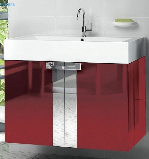 - тумба под раковину Edelform Fresh 80 красная: распашной фасад - 2 шт., ручка хром - 2 шт.
