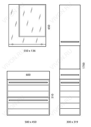 - тумба под раковину Edelform Ginza капучино: выдвижной ящик - 2 шт., ручка рейлинговая квадратная, матовый хром - 2 шт.