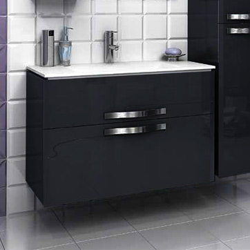 - тумба под раковину Edelform Nota 90 черная: выдвижной ящик - 2 шт., ручка хром - 2 шт., нижний ящик имеет дополнительные рейлинги для устойчивости высоких предметов