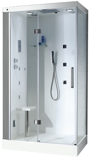 Функция: пара, радио, подключение MP3, вентилятор, верхний свет, душевая лейка, форсунки, ручной душ.