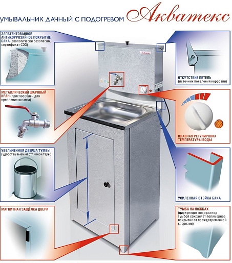 Умывальник "Акватекс" с подогревом, нержавеющая мойка, серебро: