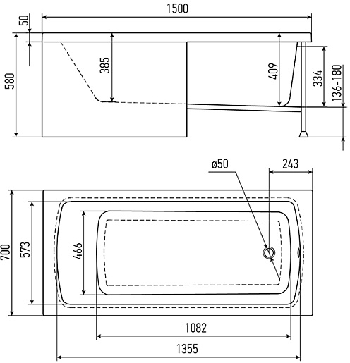 Акриловая ванна Erlit 150x70 ERA21570 - арт. ERA21570.