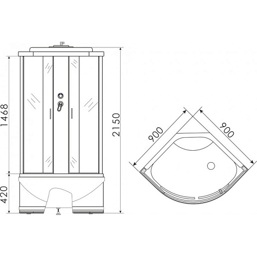 В кабине предусмотрена возможность использования как верхнего (тропического), так и ручного душа; дополнительно расширяет возможности душевой поддон высотой 42 сантиметра, который можно использовать для ножных ванн. Также внутри имеются полочка для приспособлений и зеркало.