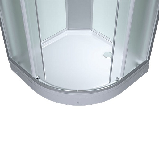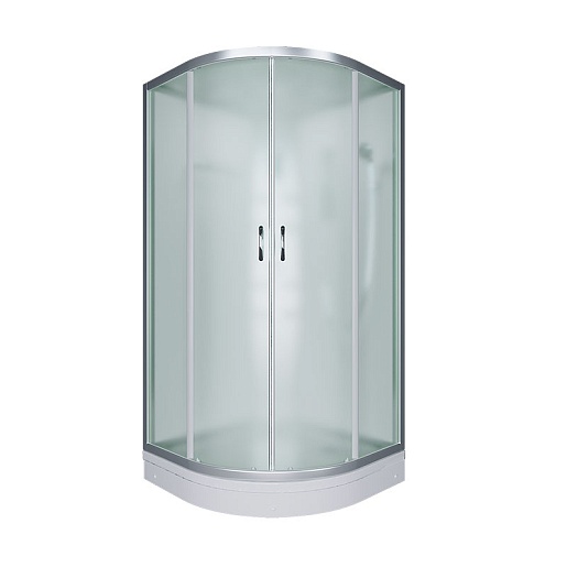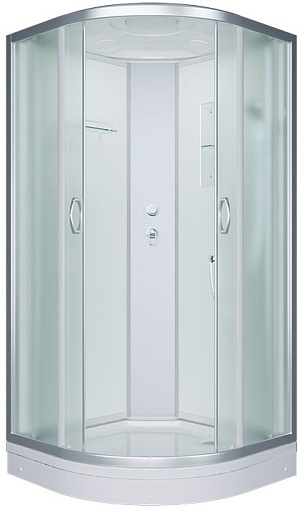 Центральная стойка душевой – пластиковая, две дверцы раздвижного типа оборудованы крепким матовым стеклом в 5 миллиметров толщиной. Из того же стекла изготовлены задние стенки.