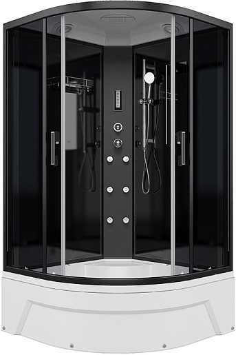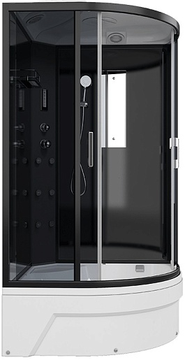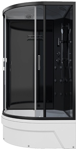 В комплекте: душевая кабина, поддон, душевой гарнитур, сифон.
