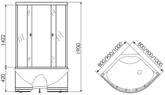 - высота поддона 42 см