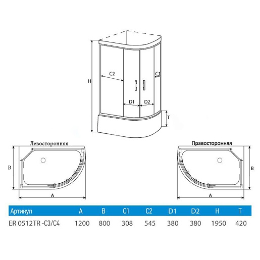 Душевой уголок ER 0512TR-C4