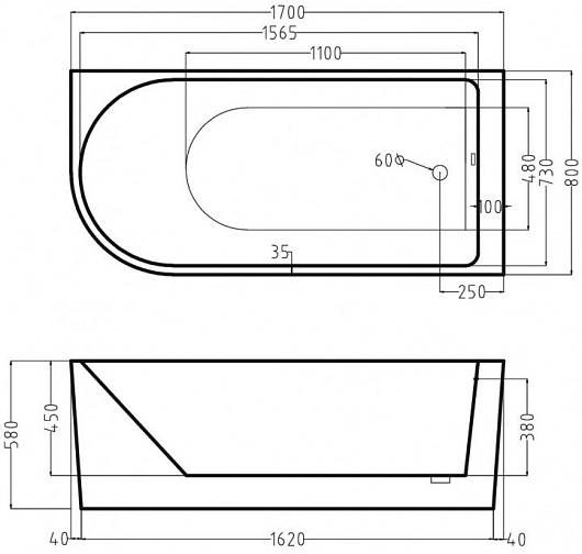 - 100% сантехнический акрил (PMMA).