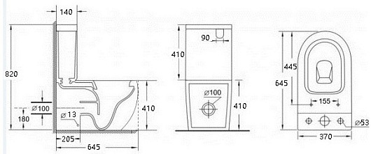 В комплекте: чаша унитаза, бачок, смывной механизм, крышка-сиденье, крепеж.