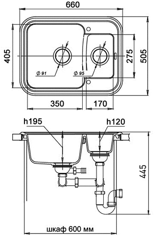 В комплекте: мойка, сифон, шаблон, крепеж.