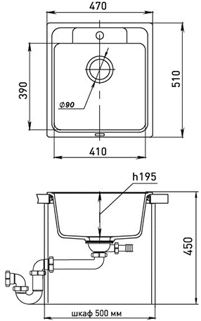Комплектация: мойка, сифон, шаблон, крепежи.