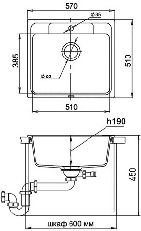- Материал: композитный материал (80% кварцевого песка и 20 % полиэфирных смол).