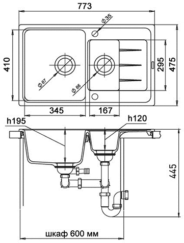 В комплекте: мойка, сифон, шаблон, крепеж.