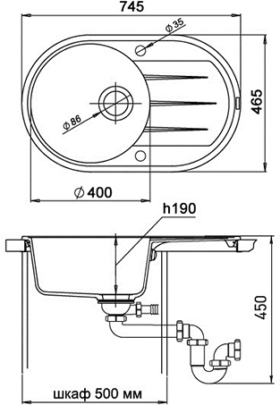 В комплекте: мойка, сифон, шаблон, крепеж.