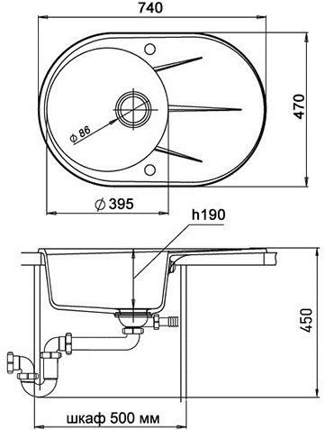 В комплекте: мойка, сифон, шаблон, крепеж.
