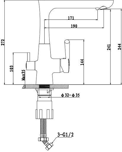 Комплектация: смеситель, комплект гибкой подводки, переходник с G1/2 на G3/8 штуцер, крепеж.
