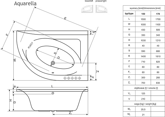 Excellent Акриловая ванна Aquarella 150х100 правая