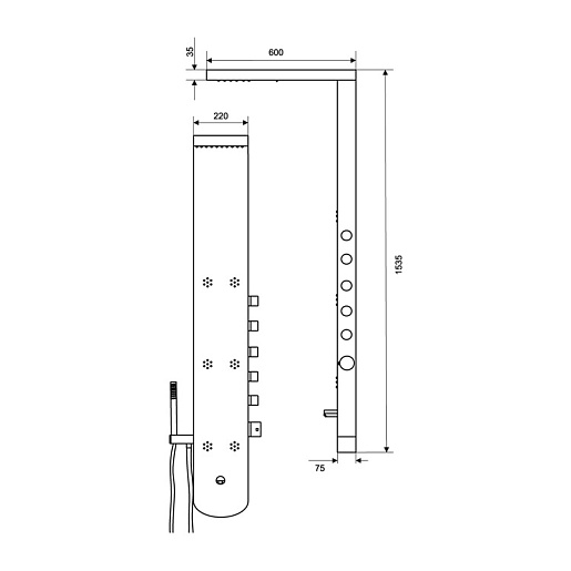 - ШхВхД: 220х1535х600 мм