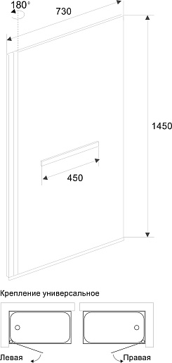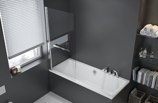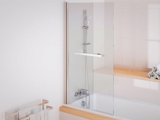 - односекционная поворотная шторка для ванны с держателем для полотенец