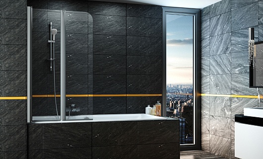 - двухсекционная поворотная шторка для ванны с двойной защитой стекла