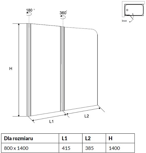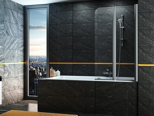 - двухсекционная поворотная шторка для ванны с двойной защитой стекла