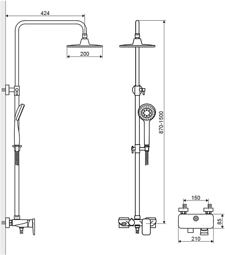 - верхний душ диаметром 200 мм.