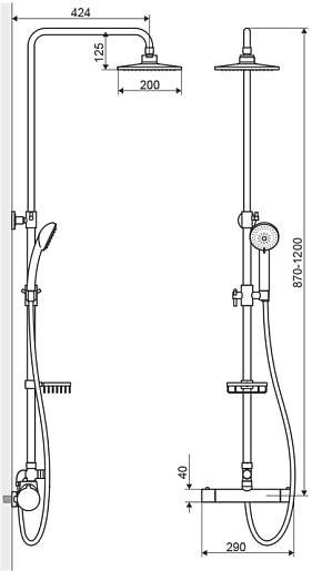 - верхний душ диаметром 200 мм