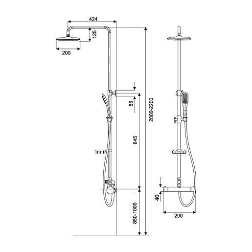 - верхний душ диаметром 200 мм