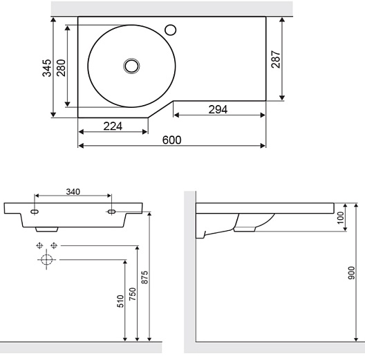 - отверстие под смеситель справа