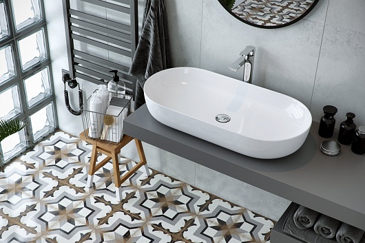 Керамическая раковина для установки на столешницу.