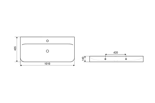 - Без перелива и отверстия под смеситель