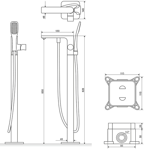- напольный отдельностоящий смеситель для ванны