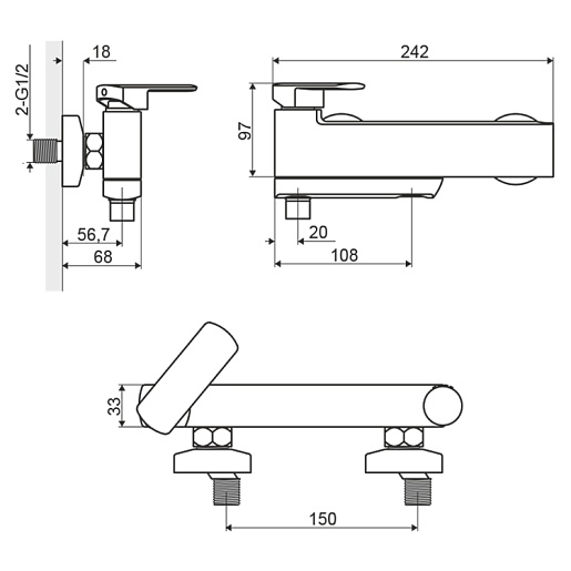 - однорычажный смеситель для ванны