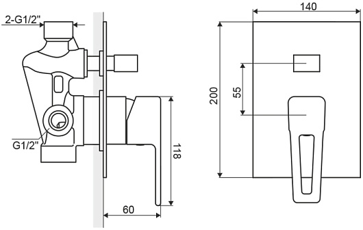 - 2-х дорожный смеситель для ванны