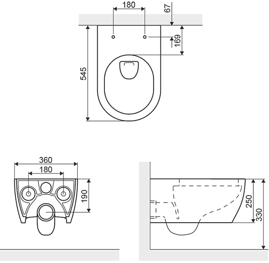 - чаша подвесного унитаза DOTO Pure Rim 545 мм.