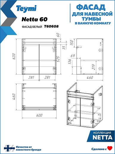 Teymi Фасад для тумбы Netta 60 белый