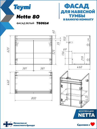 Teymi Фасад для тумбы Netta 80 белый