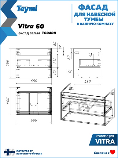 Фасад для тумбы Teymi Vitra 60 белый - арт. T60408.