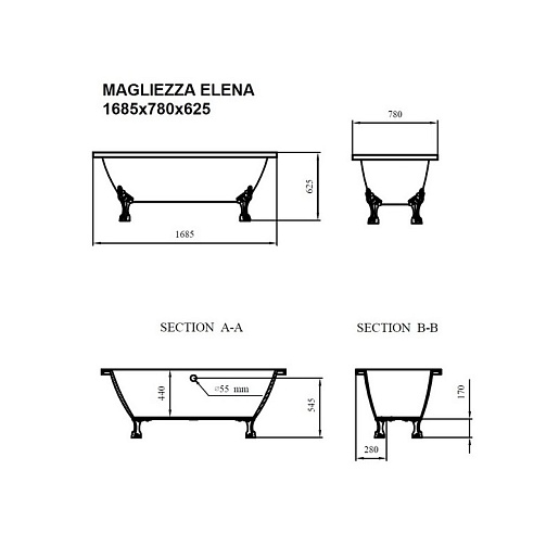 - слив-перелив, смеситель и аксессуары для отдельностоящих ванн приобретаются отдельно