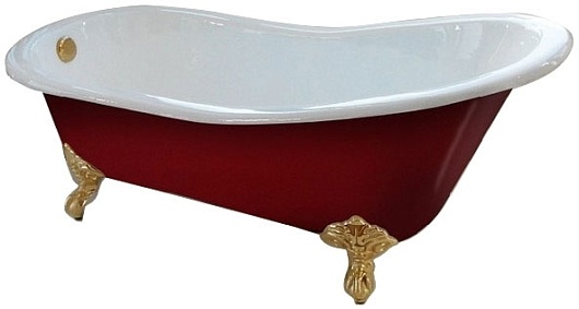 Фэма Чугунная ванна "Gracia Red", ножки золото, красный глянец