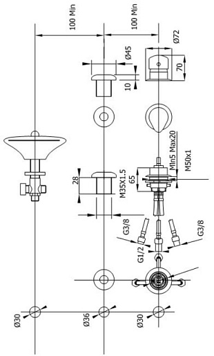 Фэма Смеситель на борт ванны "Гранд Ниагара" золото