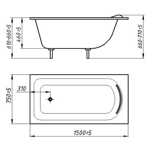 Размер ДхШхВхГ: 1500±5x750±5x610-660±5x460±5 мм