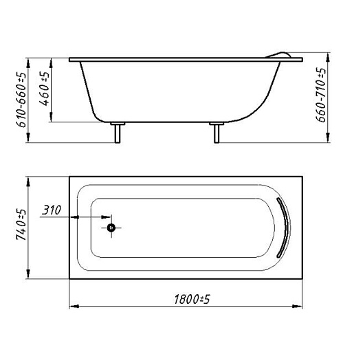 Размер ДхШхВхГ: 1800±5x740±5x610-660±5x460±5 мм