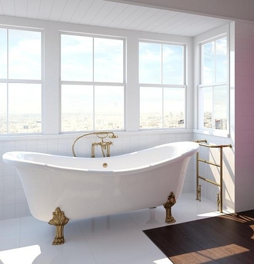 Фэма Ванна из литьевого мрамора Габриэлла, опоры сакарская медь