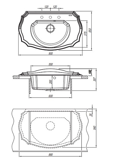 - комплектация: отводная арматура с выпуском 3 1/2" (D=90) и переливом, набор крепежей, трафарет для вырезания столешницы, технический паспорт, гарантийный талон.