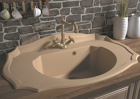 - комплектация: отводная арматура с выпуском 3 1/2" (D=90) и переливом, набор крепежей, трафарет для вырезания столешницы, технический паспорт, гарантийный талон.