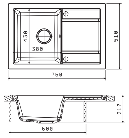 Florentina Мойка гранитная Липси 760 с углубленным крылом антрацит