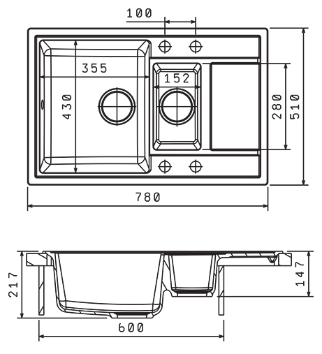 Florentina Мойка гранитная Липси 780К с крылом шампань