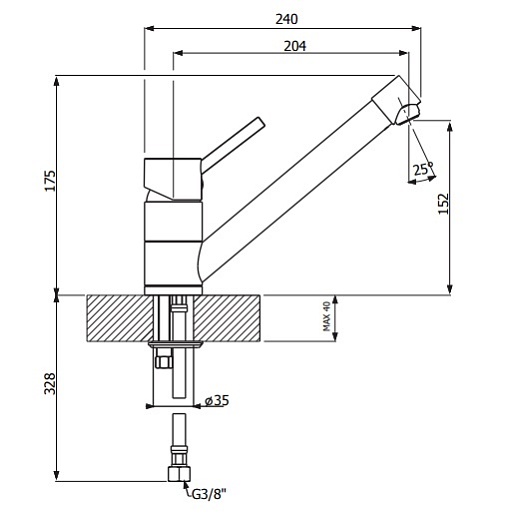 - установочный диаметр отверстия для монтажа - 35 мм